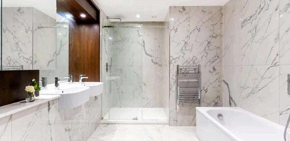 The principal bedroom includes an en suite shower room, while the second double bedroom is served by a separate bathroom. Both bedrooms are generous in size and benefit from fitted storage.