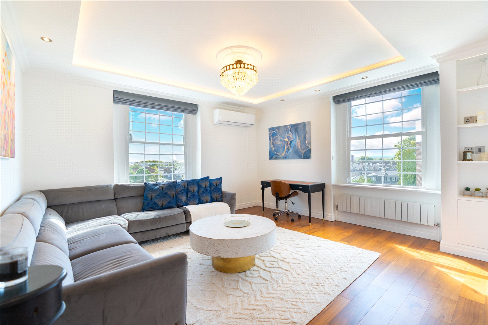 A beautifully refurbished apartment spanning 1,427 sq.ft located on Fitzjames Avenue, W14, boasting smart technology, and far-reaching views.