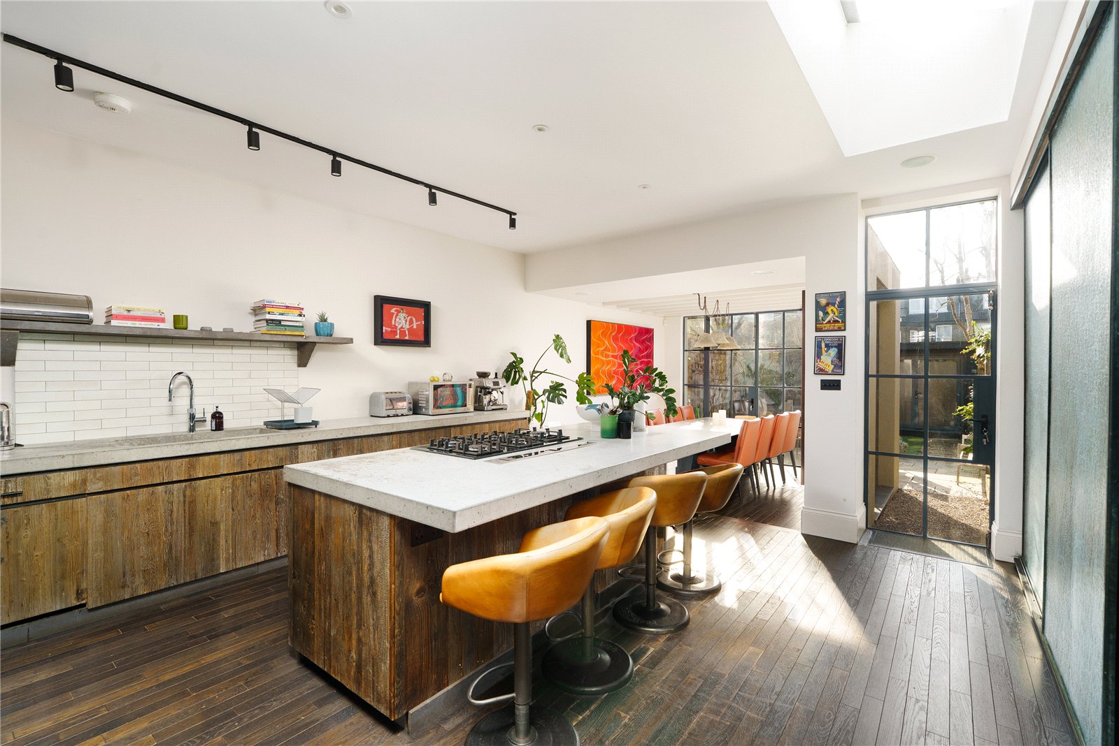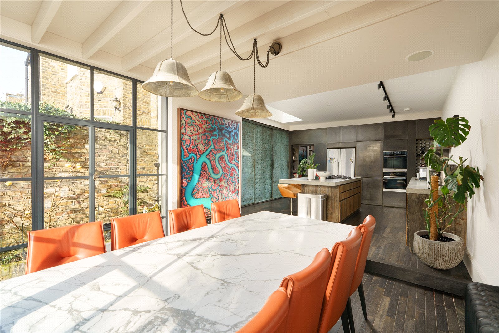 Situated on a quiet residential wide road, 100 yards away from Queen’s Park, this chic beautifully extended three bedroom terraced home offers executive living at its finest. The home boasts period features including living room Edwardian high ceilings and original entrance tiles harmoniously contrasted with modern appliances, ample natural light features and sleek contemporary finishes.