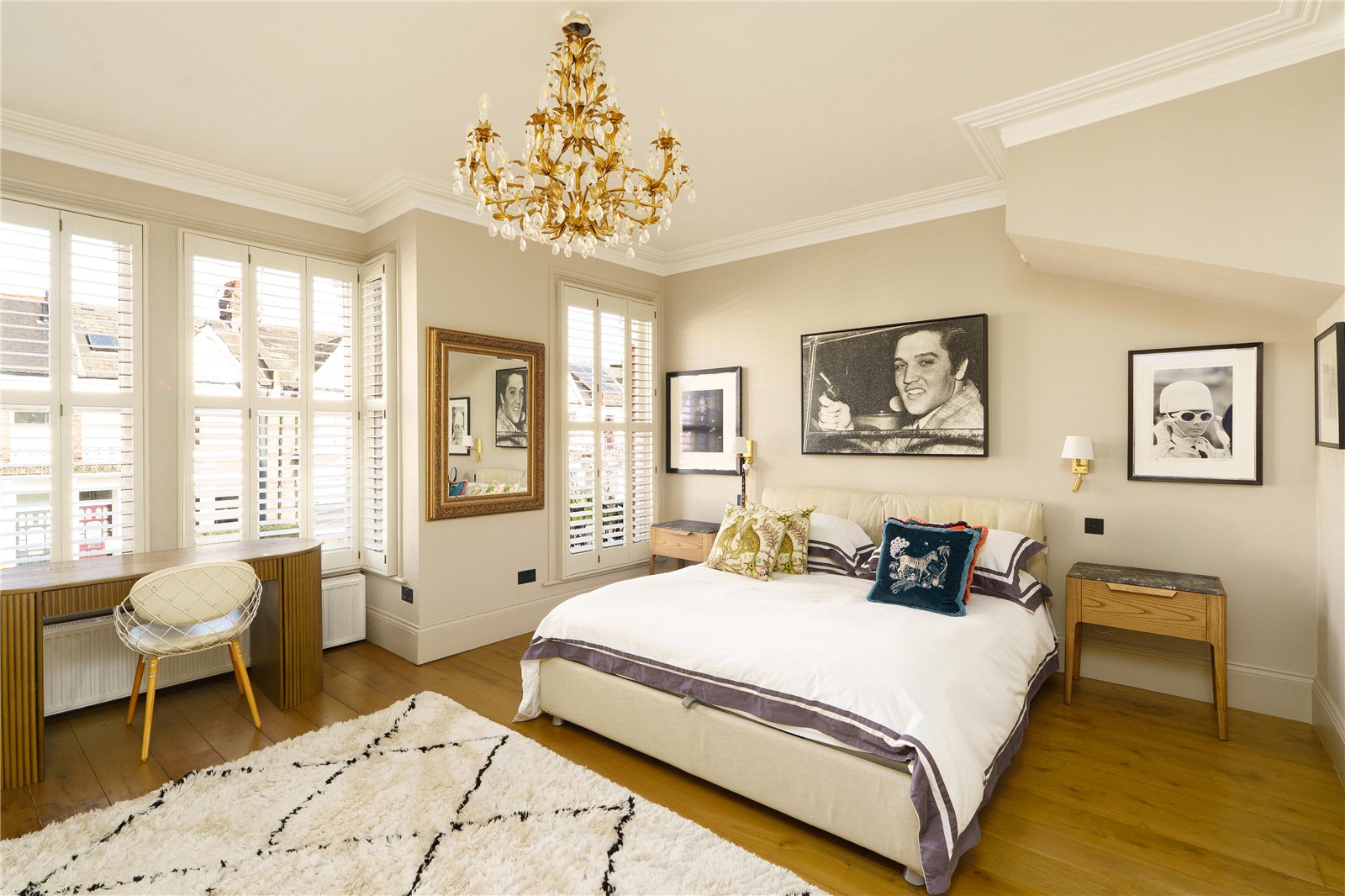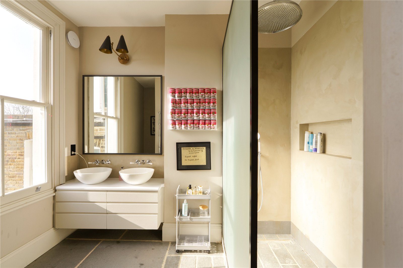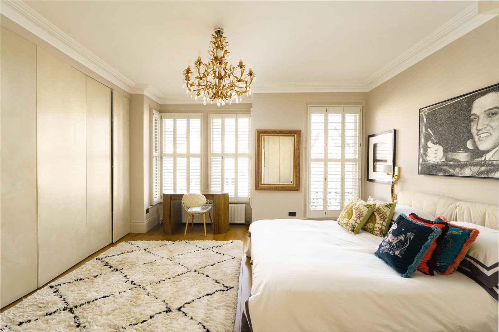 The first floor includes a spacious bedroom with bespoke wardrobes and integrated AC, newly renovated, spacious family bathroom with underfloor heating and Victorian finishes and the impressive double Master en-suite (originally two bedrooms which can be easily configured back). The master, offers AC, extensive walking ward-robe space, beautiful natural light, high ceilings and wooden floors with a spacious shower room with ample natural light and underfloor heating.