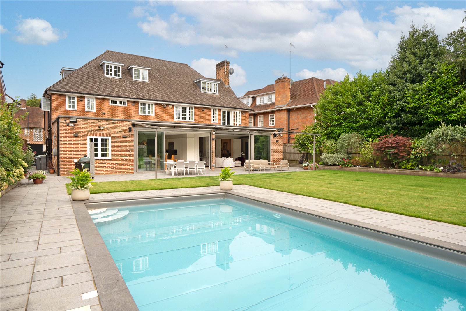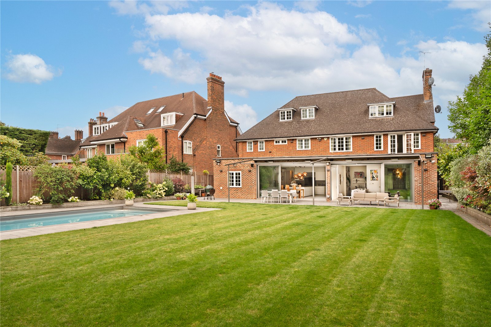 The house is fully detached and has an incredible West facing private garden. There is an outbuilding at the bottom of the garden currently used as a gym and office. Plus a fantastic outdoor heated swimming pool.