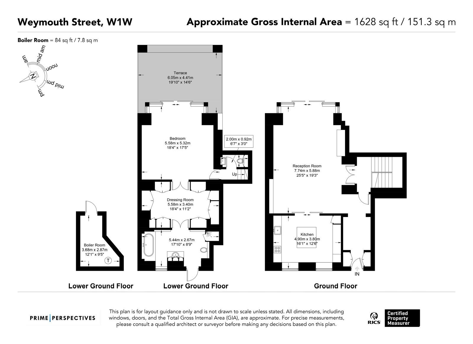 An impressive duplex apartment offering approximately 1,628 sq ft of internal space with a private terrace, located on Weymouth Street in Marylebone.