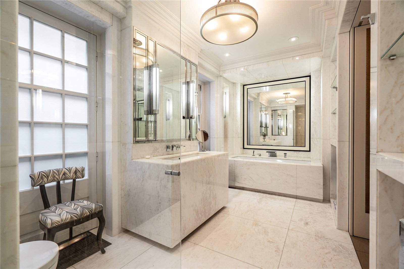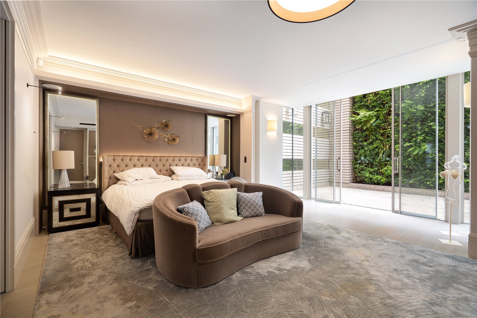 Stairs lead down to the lower ground level which comprises of a guest WC and a generous double bedroom suite with full length glass doors opening onto a large private terrace with a living green wall. A fully fitted dressing room makes way to a well appointed four piece bathroom suite. The property benefits further from a boiler room located on the floor below.