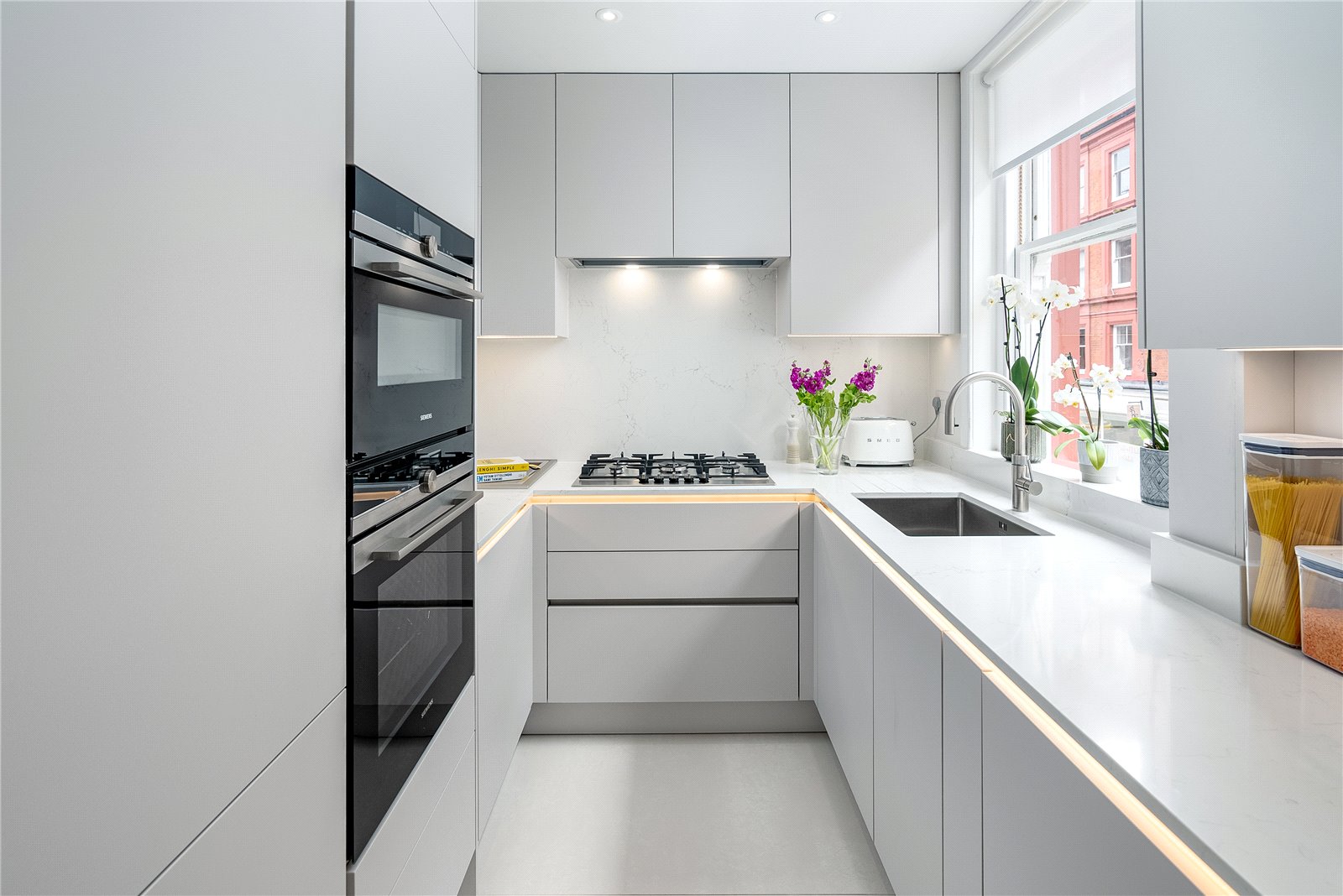 Luxury Kitchen: • Siemens iQ700 Oven, delivering precise cooking results • Siemens iQ700 Oven with Microwave, offering versatility in culinary creations • Siemens Fully iQ300 Integrated Dishwasher, making post-meal cleanup a breeze • Siemens iQ500 Washer Dryer, providing convenience and efficiency • Liebherr Fridge Freezer with Easy Fresh and Smart Frost technology, ensuring food stays fresh longer • Quooker Pro3 Flex Boiling Water Tap & Water Filter, delivering instant hot water and filtered drinking water • Electric Underfloor Heating with smart controls, creating a cozy and comfortable environment